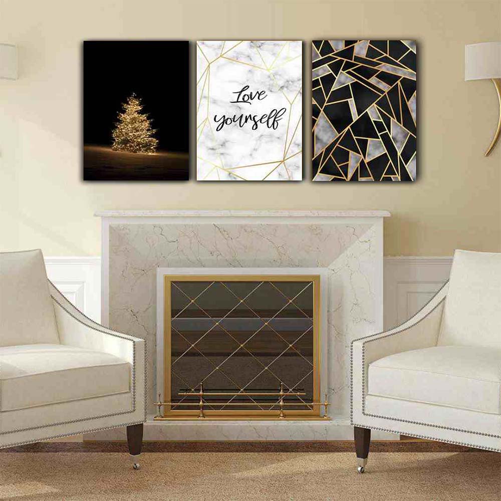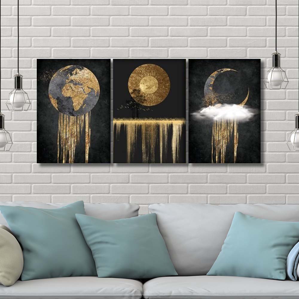 تابلو شاسی 3 تکه طرح مدرن ورق طلا چهره کد 54587