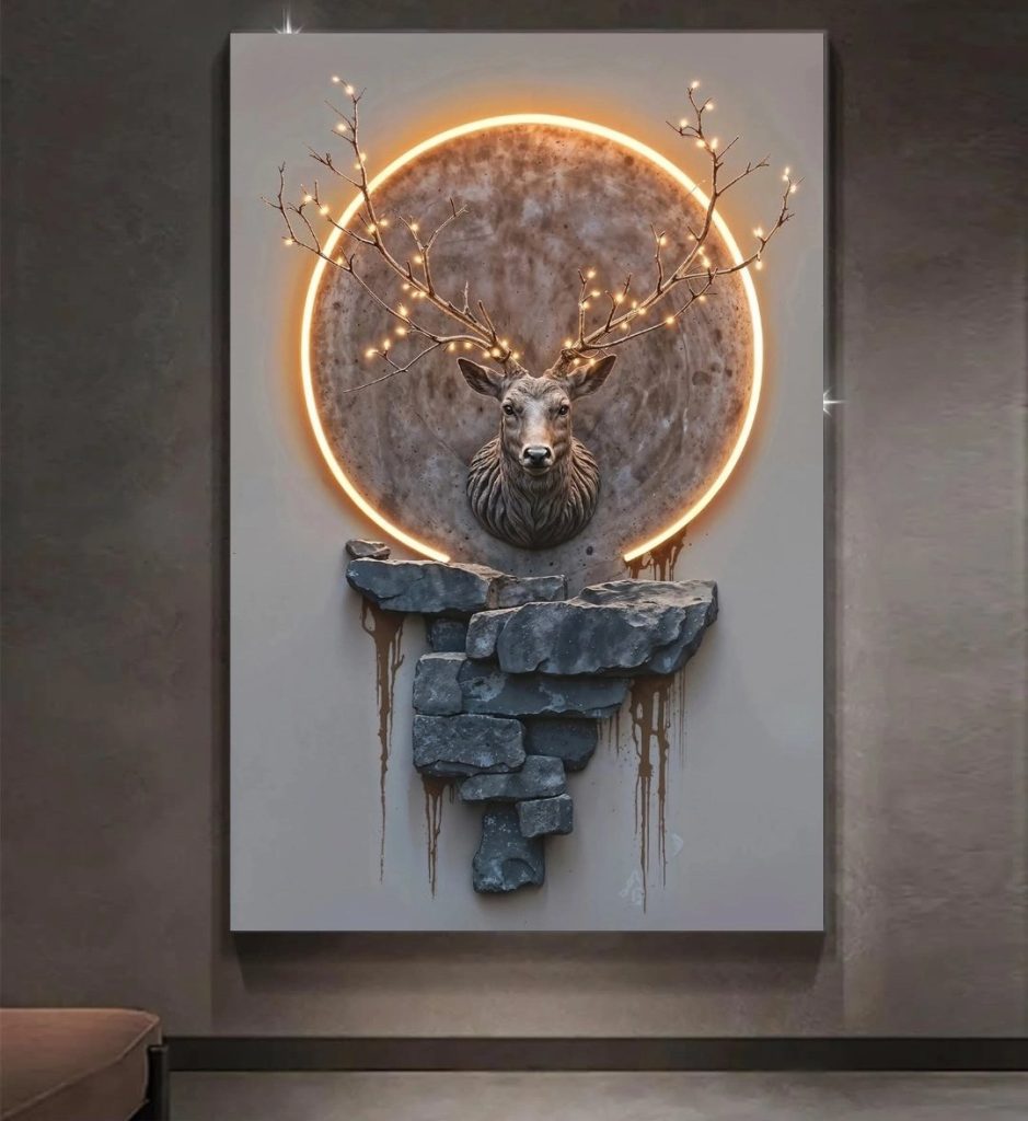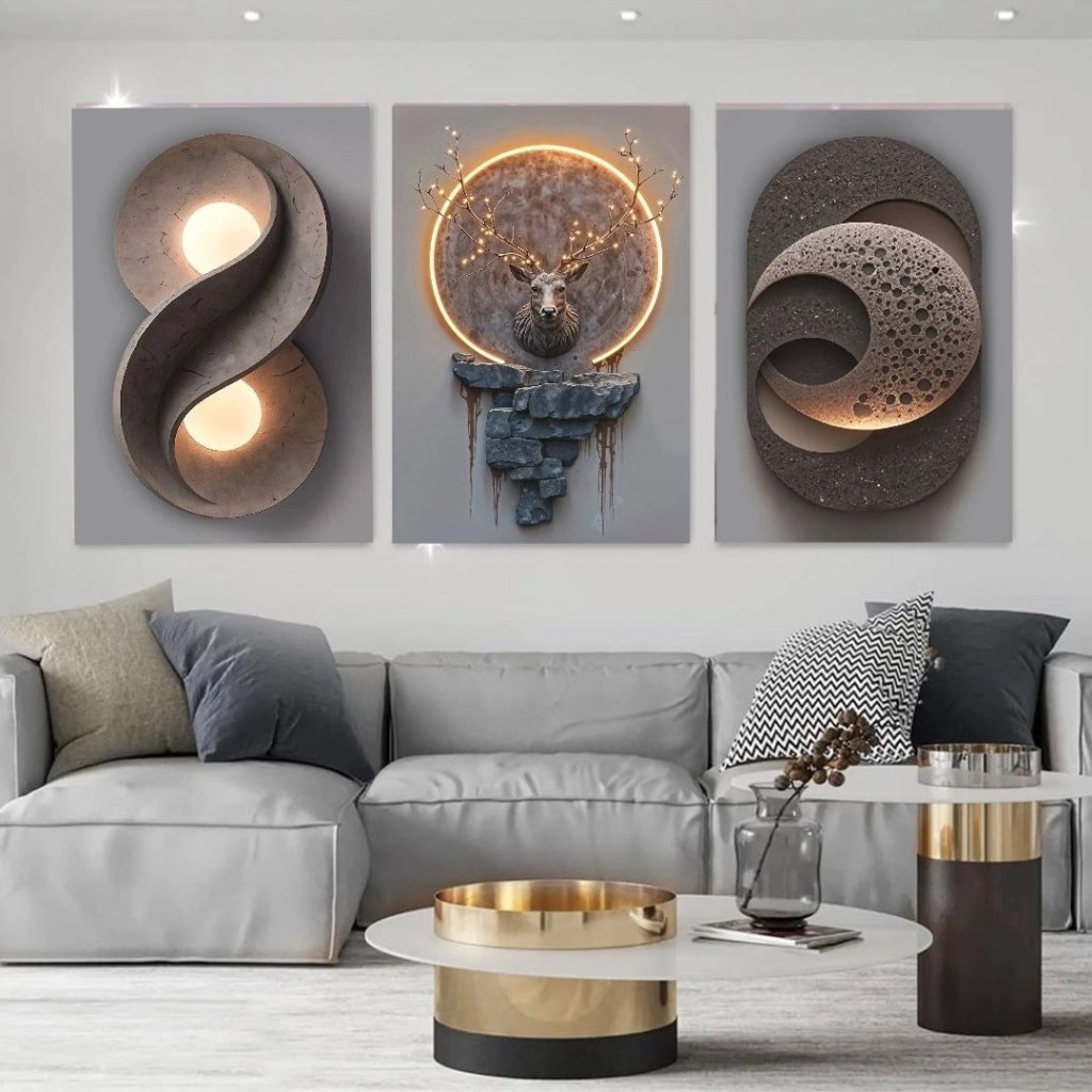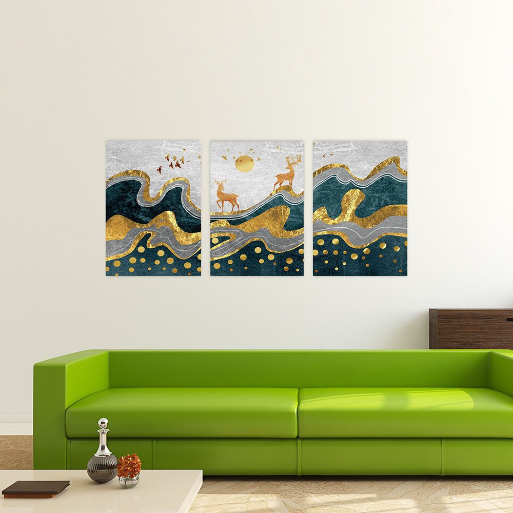 تابلو شاسی 3 تکه طرح مدرن انتزاعی و گوزن کد 13278