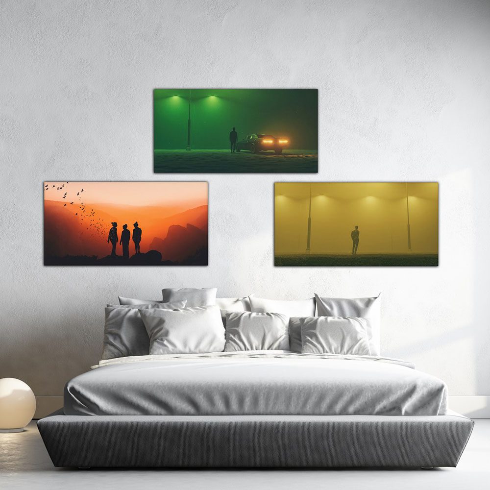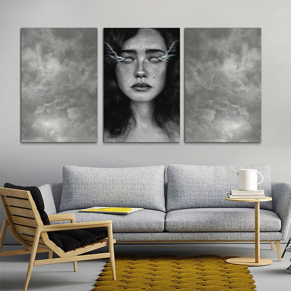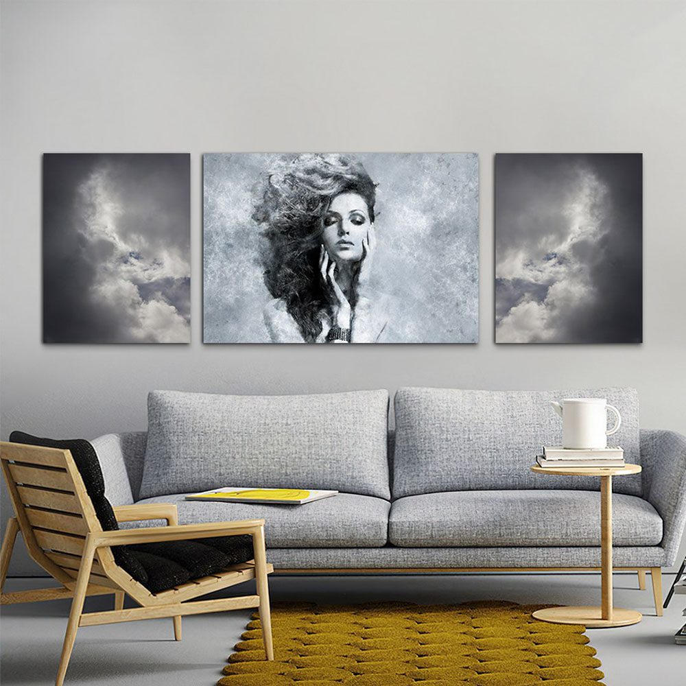 تابلو شاسی 3 تکه طرح آسمان سیاه و پرتره کد 14165