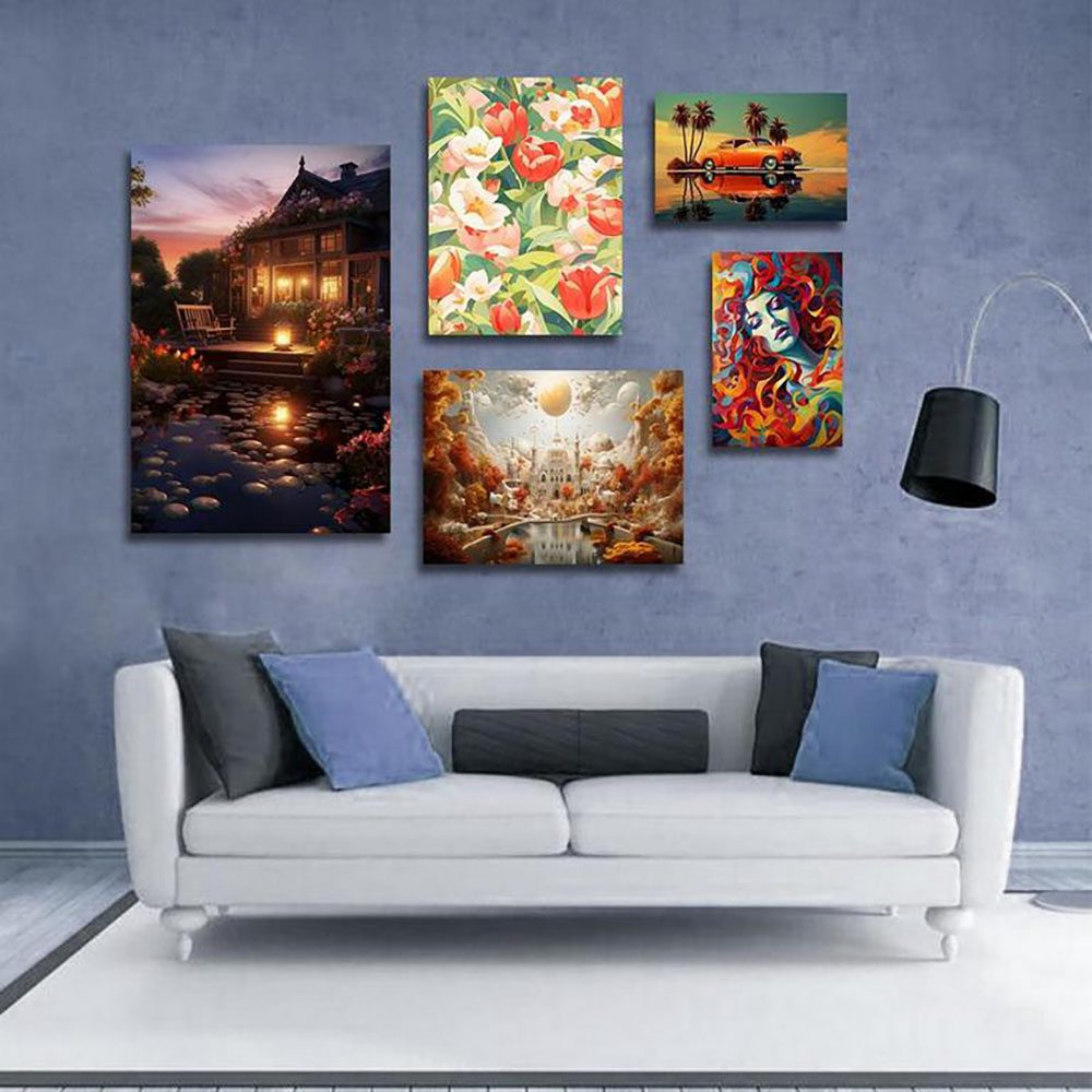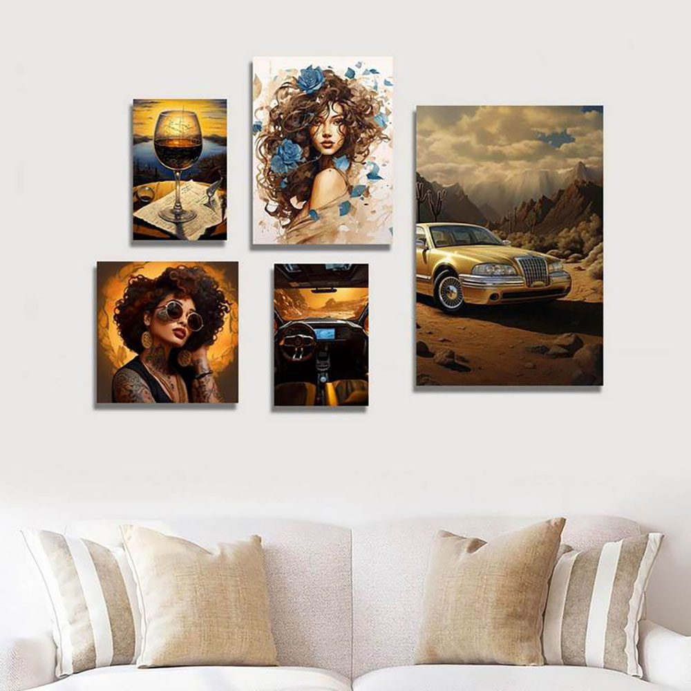 تابلو شاسی 7 تکه طرح مدرن طبیعت و چهره و ماشین کد 62350