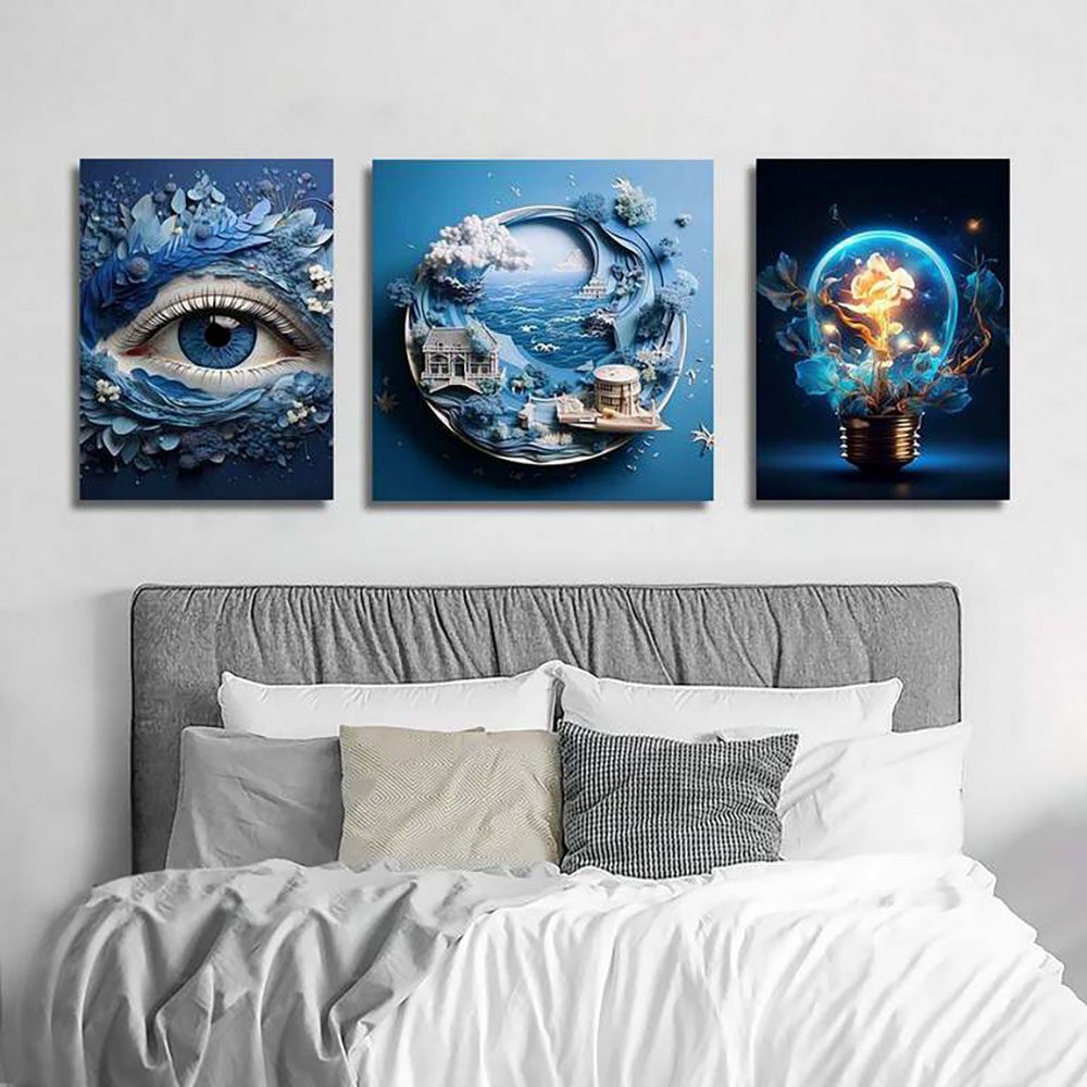 تابلو شاسی 3 تکه طرح گرافیکی چشم و جهان کد 64987