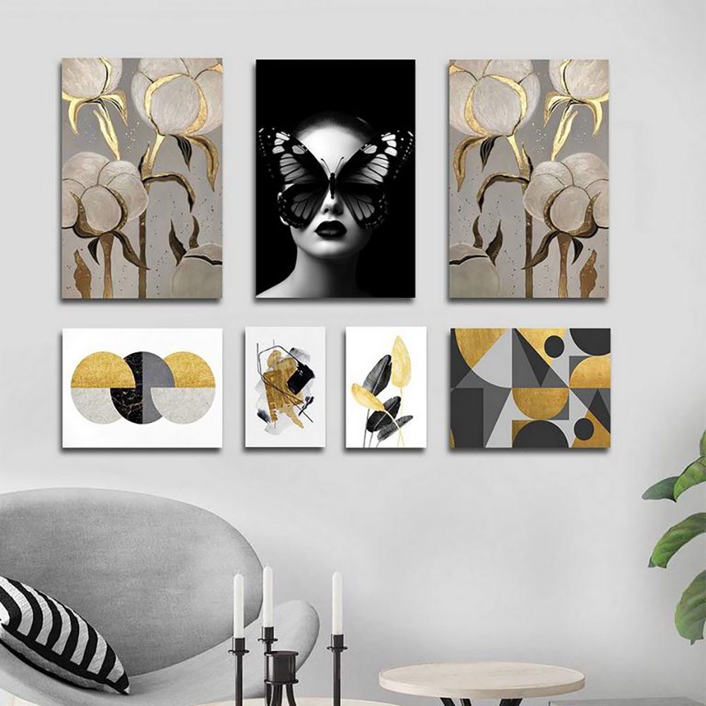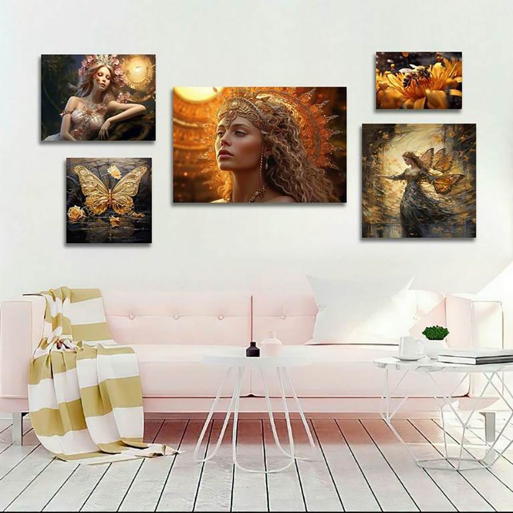 تابلو شاسی 5 تکه طرح چهره و گل و پروانه طلایی کد 54313