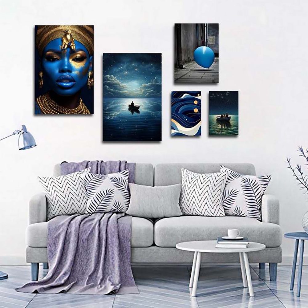 تابلو شاسی 5 تکه طرح زن آفریقایی و نقاشی دریا کهکشانی کد 15695