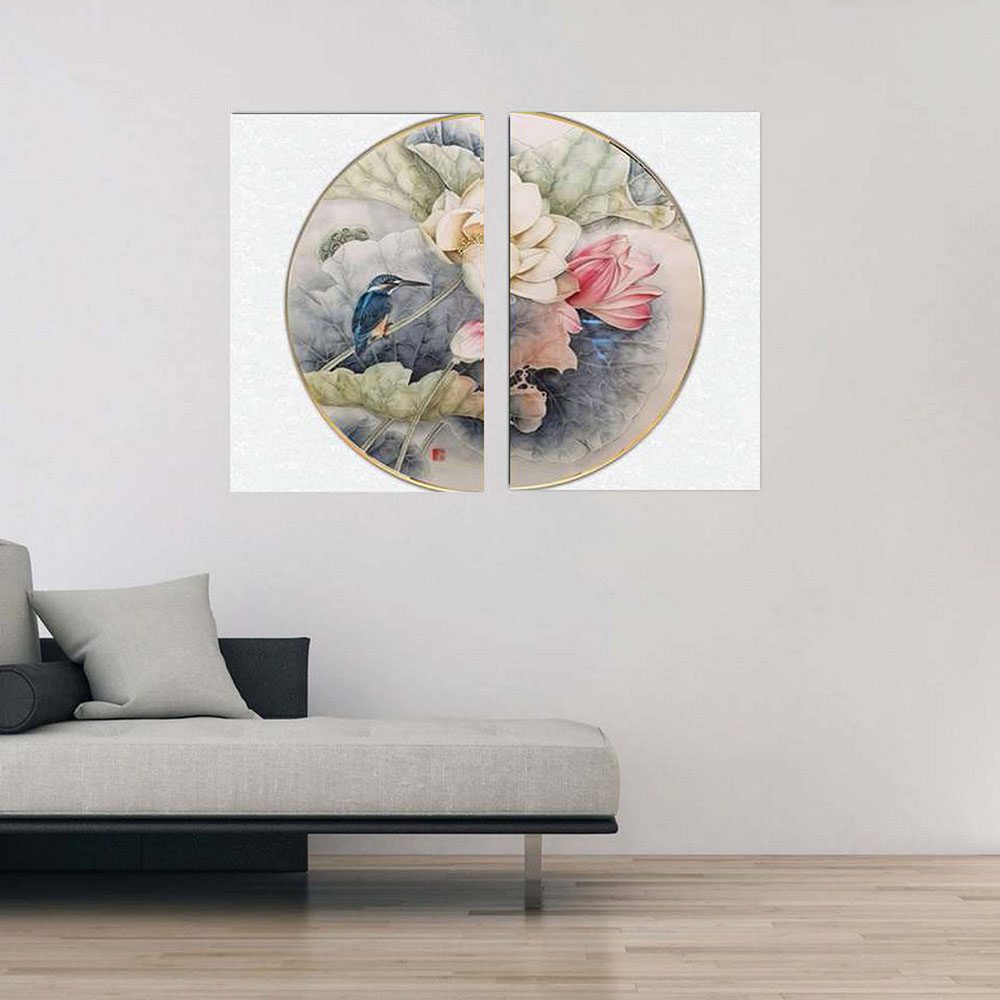 تابلو شاسی 2 تکه طرح مدرن نیم دایره گل رنگی و پرنده کد 57400