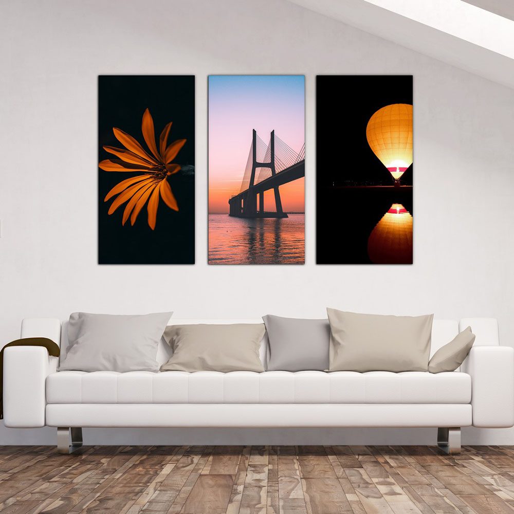 تابلو شاسی 3 تکه طرح بالن و گل و پل کد 85674