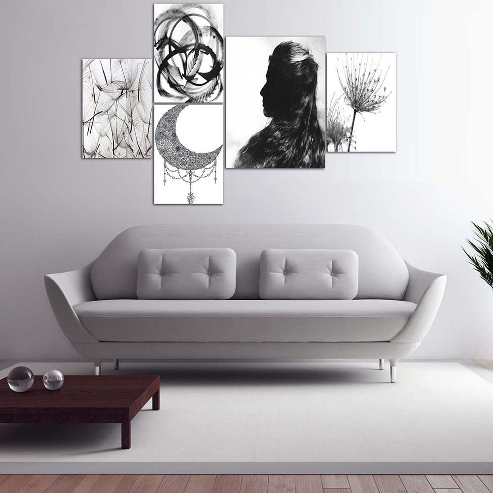 تابلو شاسی 5 تکه طرح قاصدک و ماه کد 59823