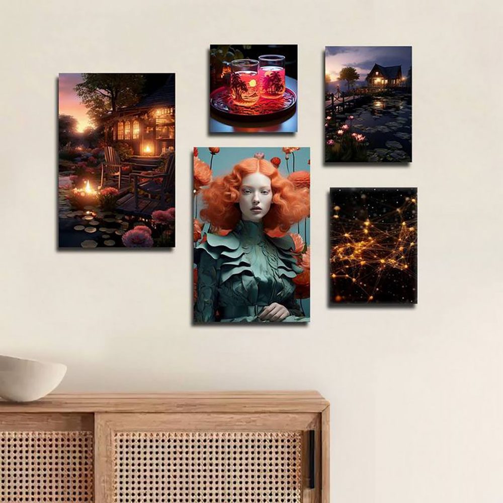 تابلو شاسی 5 تکه طرح مدرن منظره کلبه چوبی و چهره کد 44993