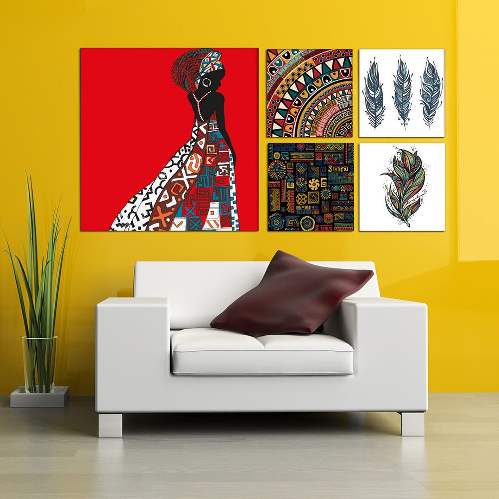 تابلو شاسی 5 تکه طرح دختر افریقایی و پر کد 70589