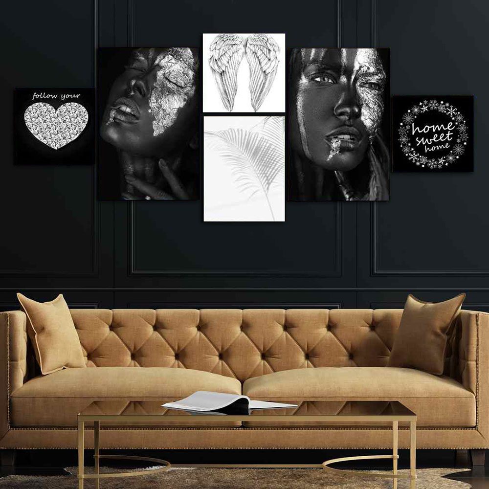 تابلو شاسی 6 تکه طرح چهره و قلب سیاه کد 66155