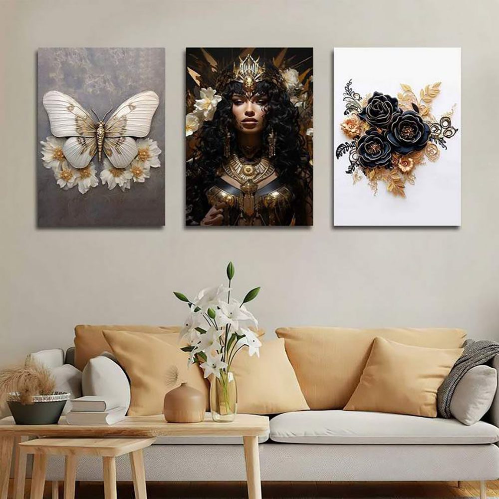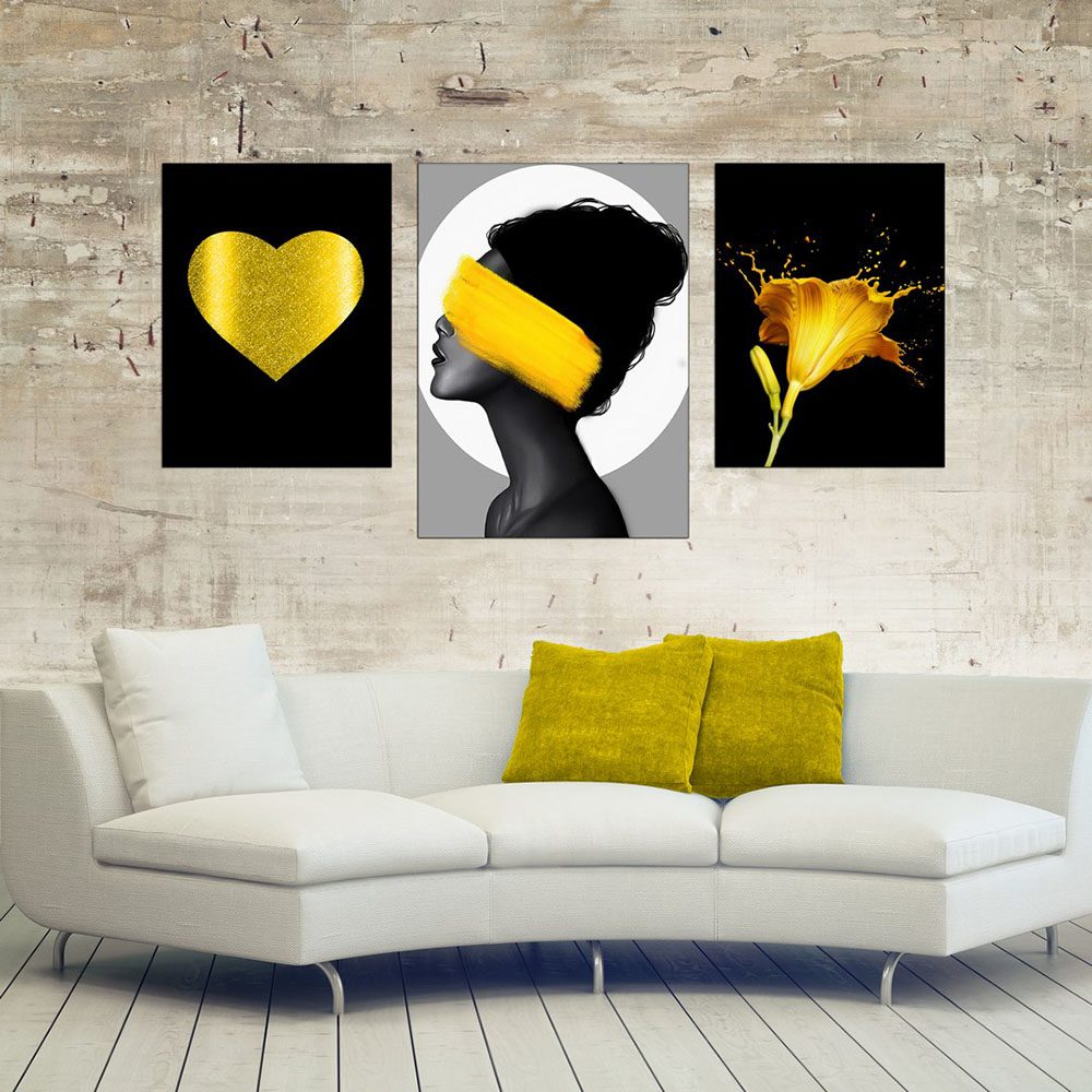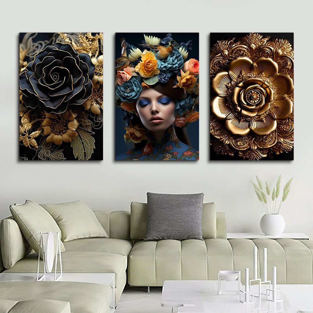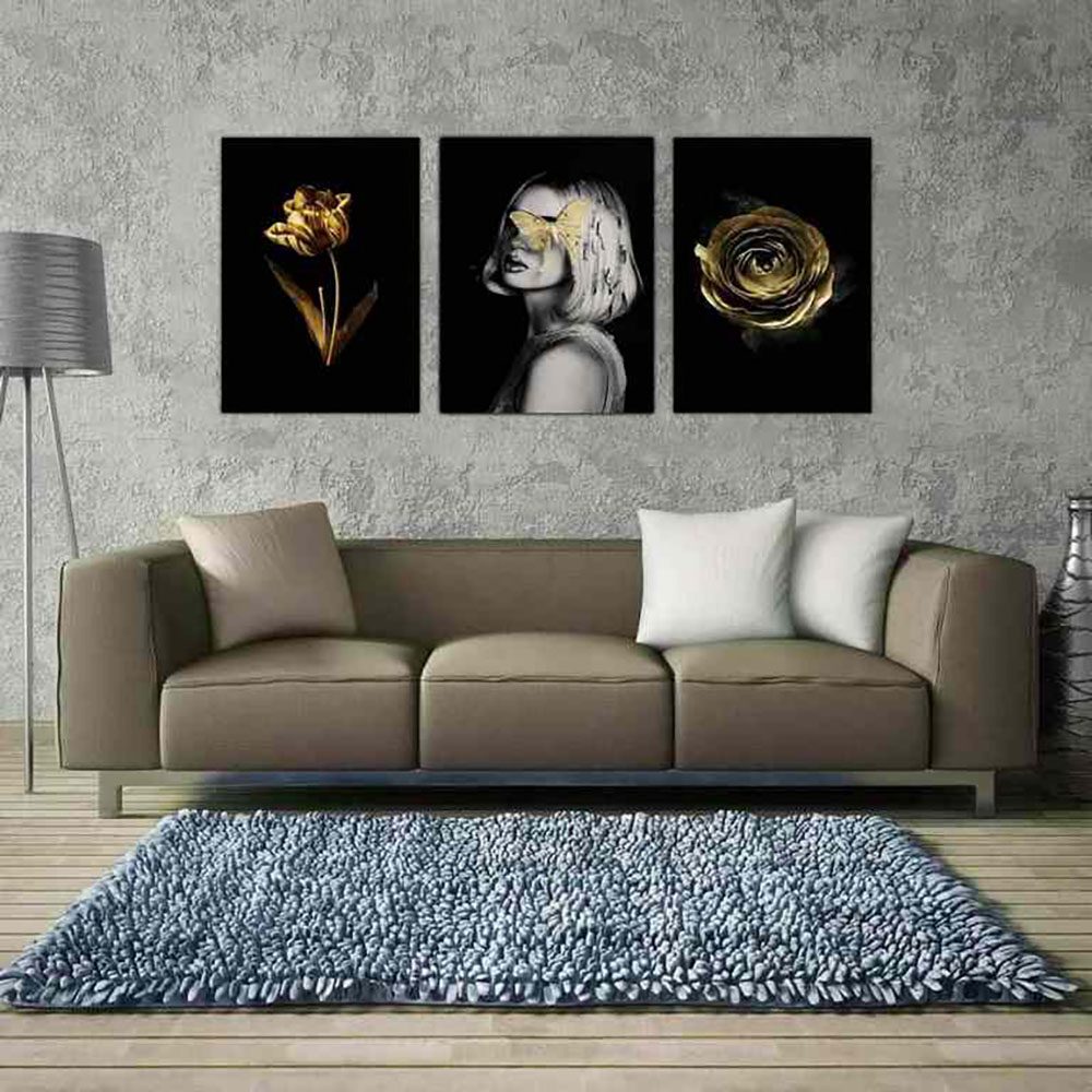 تابلو شاسی 3 تکه طرح گل طلایی و چهره کد 14117
