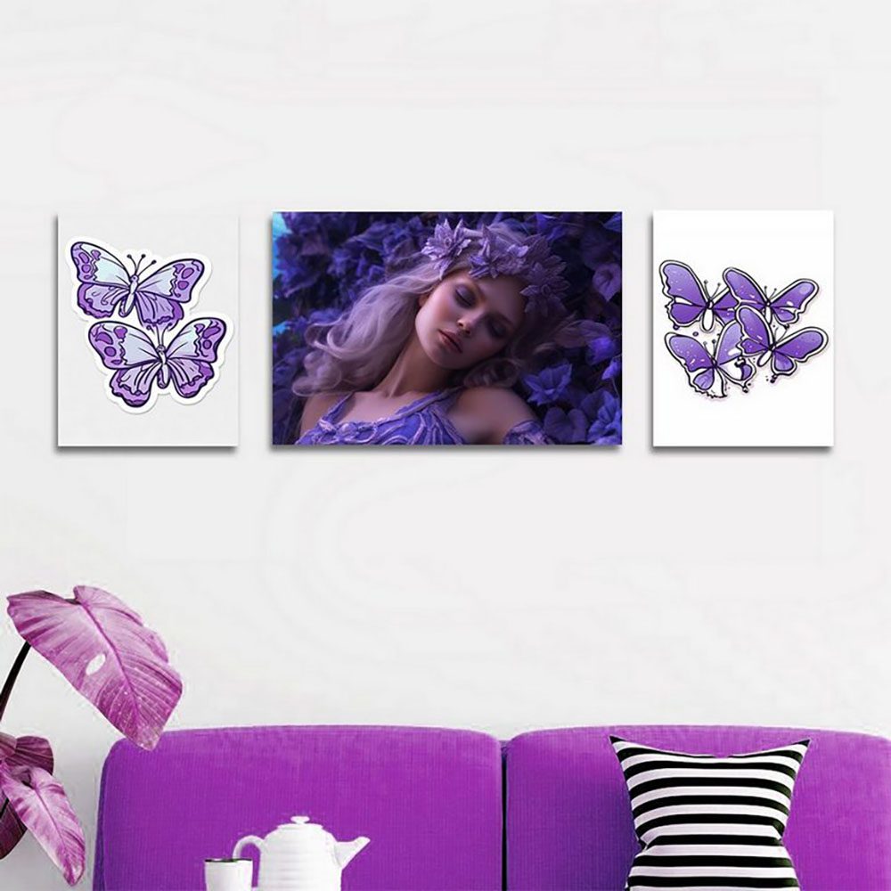 تابلو شاسی 3 تکه طرح فشن استایل رنگ مو و پروانه کد 30033