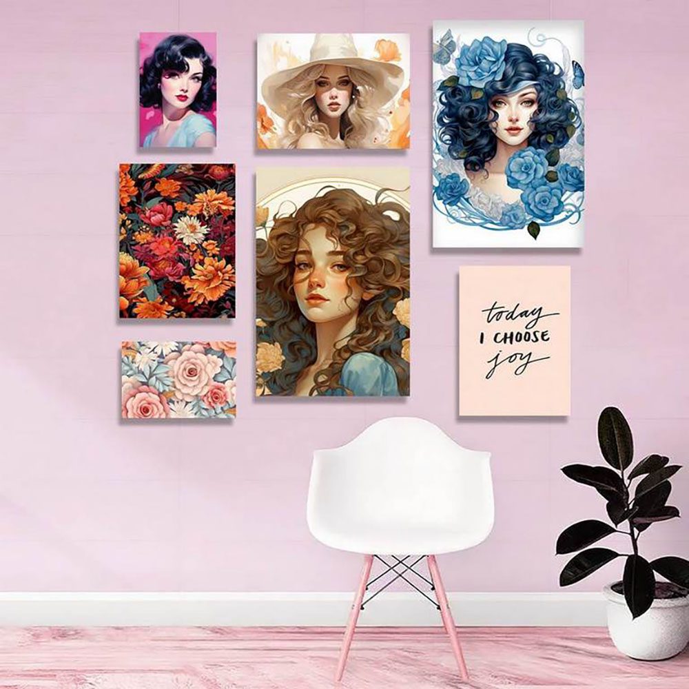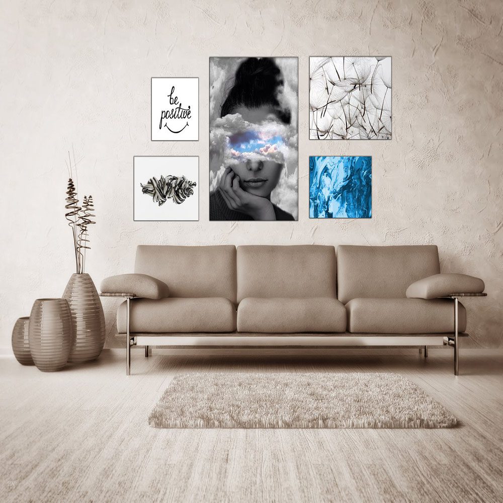 تابلو شاسی 7 تکه طرح مدرن چهره و گل پنبه و مینیمال کد 46421