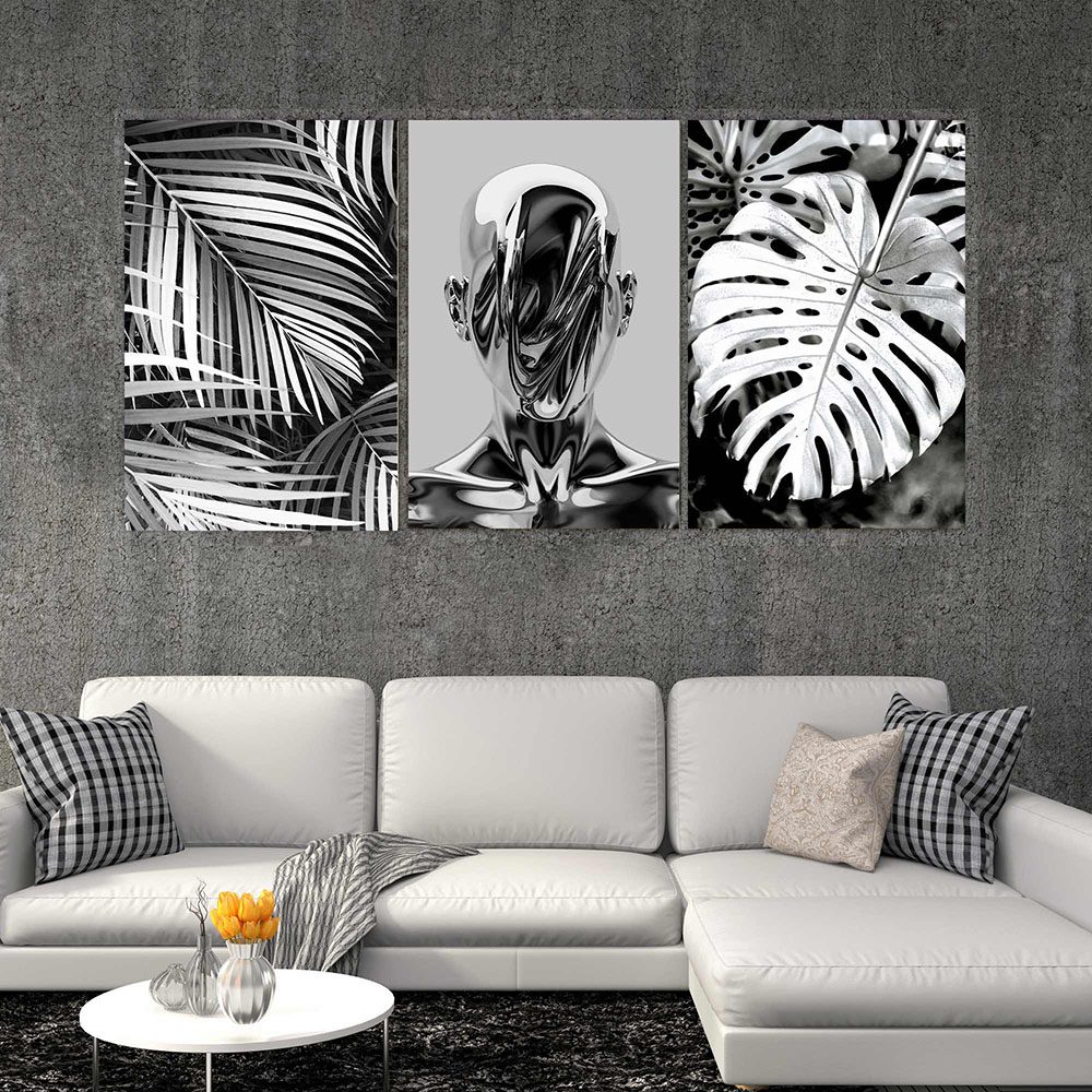 تابلو شاسی 3 تکه طرح مدرن برگ و چهره کد 22363