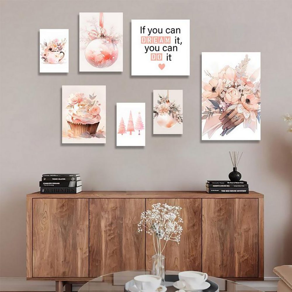 تابلو شاسی 7 تکه طرح گل صورتی کد 91959