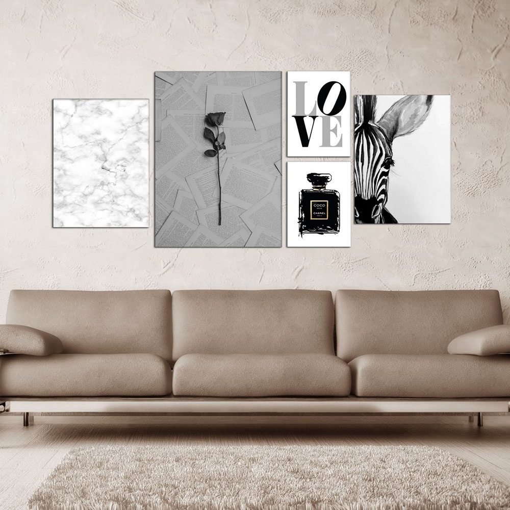 تابلو شاسی 5 تکه طرح گل فاتزی و ادکلن LOVE کد 10074