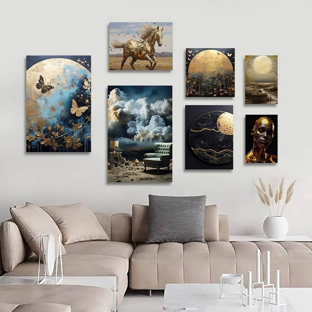 تابلو شاسی 7 تکه طرح اسب و ماه و پروانه طلایی کد 17592