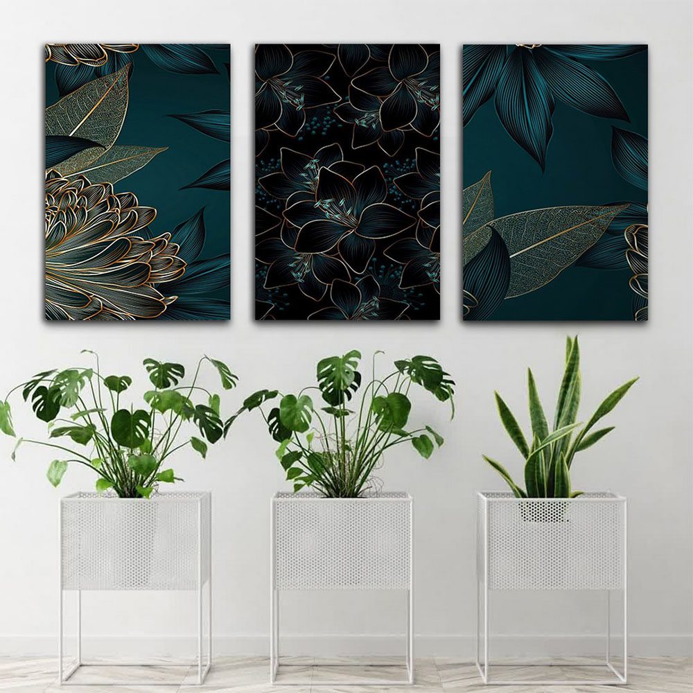 تابلو شاسی 3 تکه طرح مدرن گل و برگ کد 51347