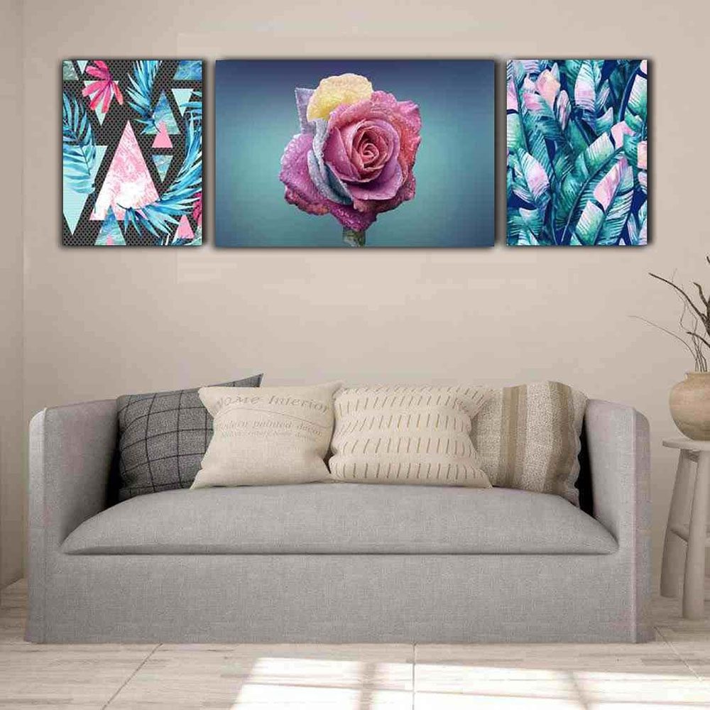 تابلو شاسی 3 تکه طرح گل و برگ رنگی کد 18392