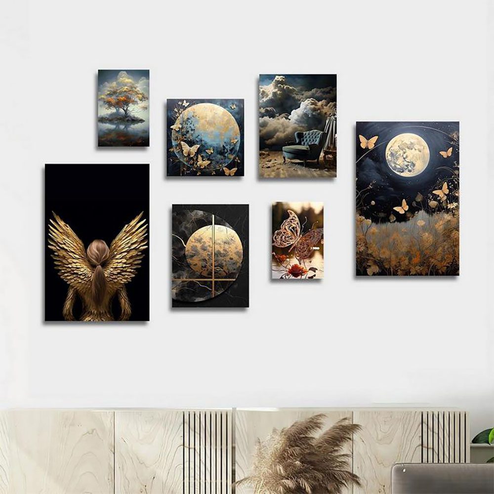 تابلو شاسی 7 تکه طرح ماه و بال طلایی کد 12757