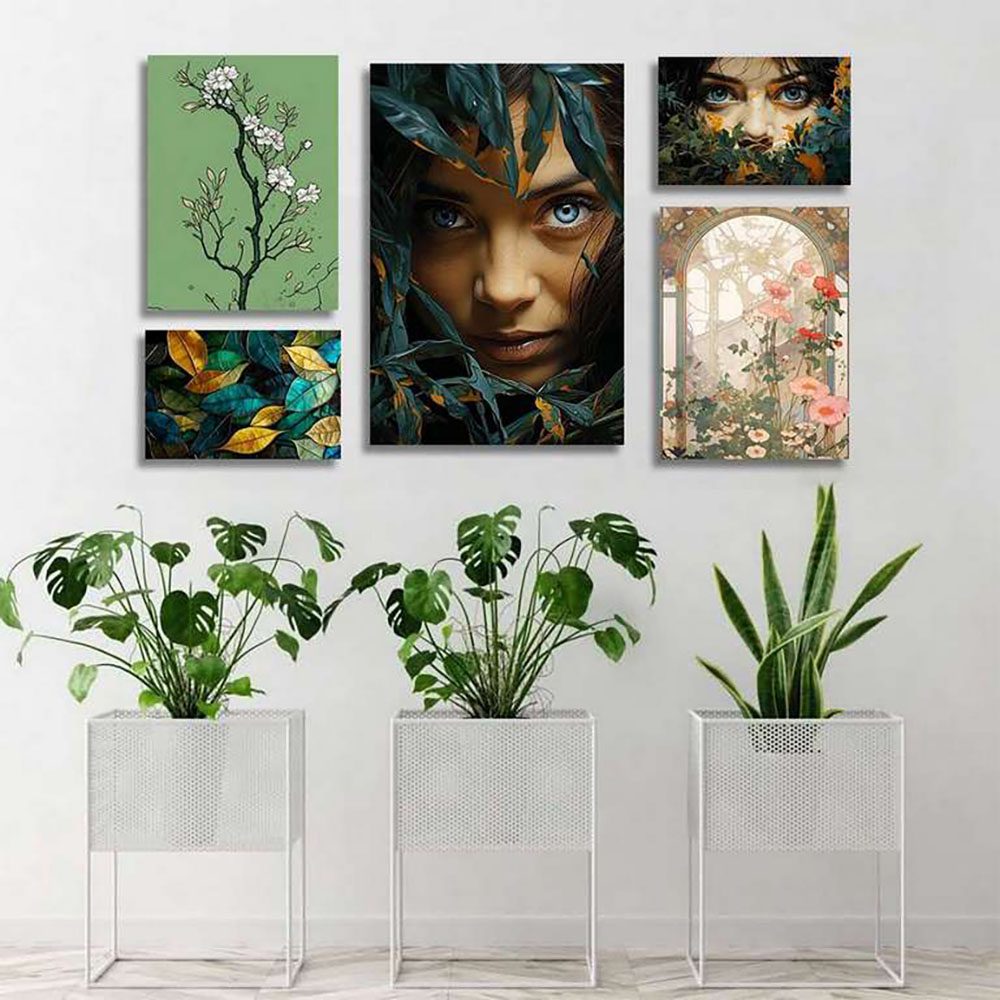 تابلو شاسی 5 تکه طرح چهره و گل رنگی و برگ کد 80678