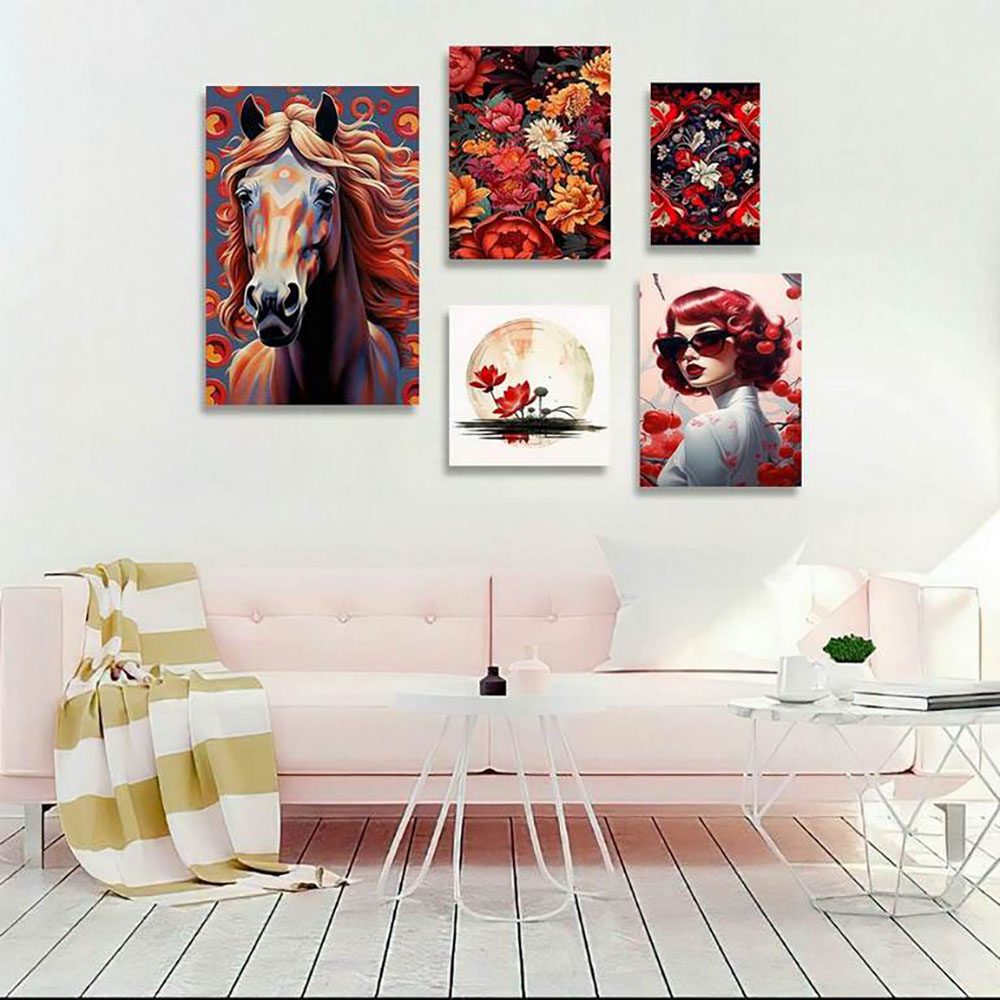 تابلو شاسی 5 تکه طرح پرتره چهره و اسب و گل کد 96374