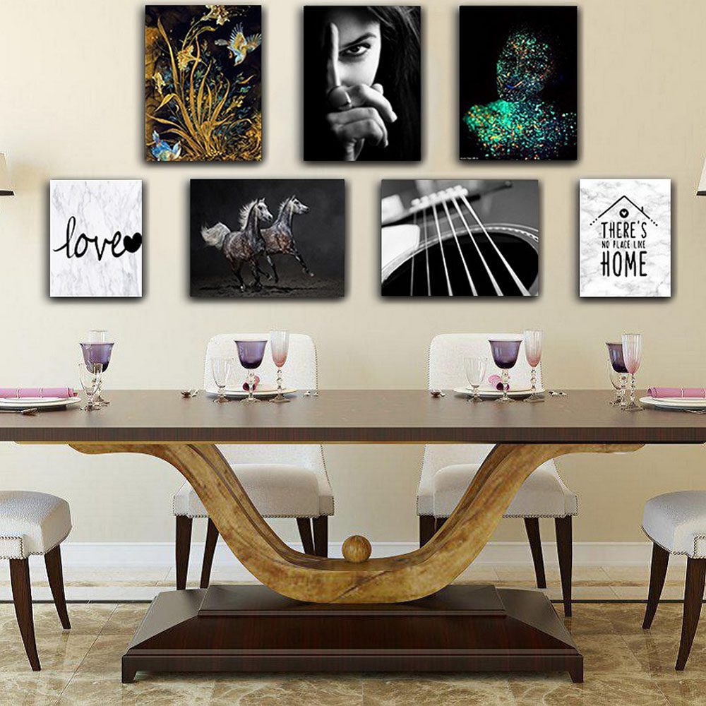 تابلو شاسی 7 تکه طرح گیتار و چهره و اسب سیاه کد 17944