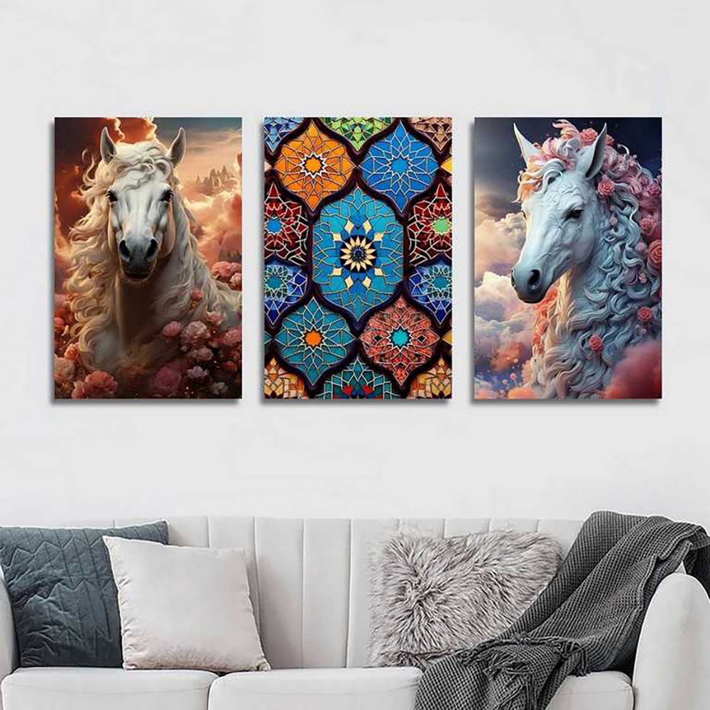 تابلو شاسی 3 تکه طرح گرافیکی اسب سفید کد 16630