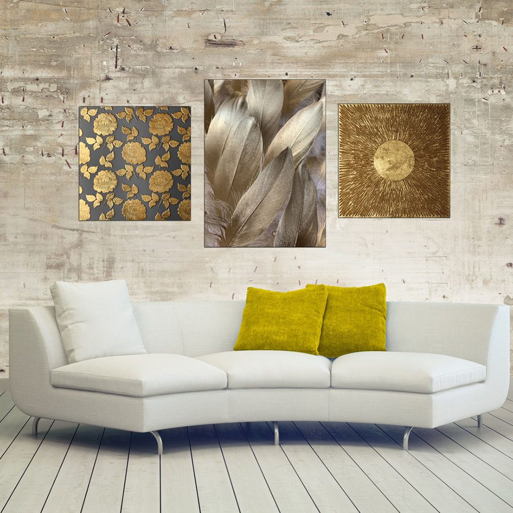 تابلو شاسی 3 تکه طرح مدرن گل طلایی کد 17685