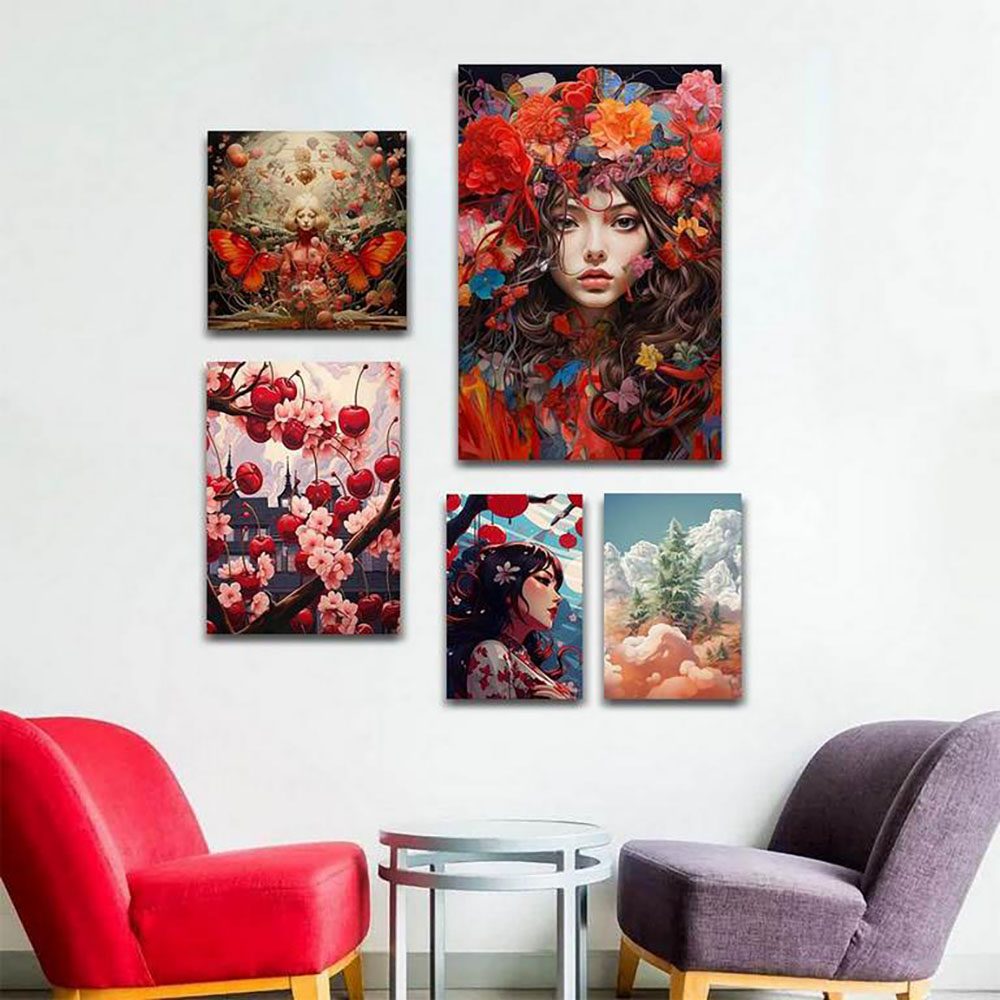 تابلو شاسی 5 تکه طرح گل رنگی و چهره زن کره ای کد 96752