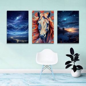تابلو شاسی 3 تکه طرح آسمان شب و اسب کد 48890