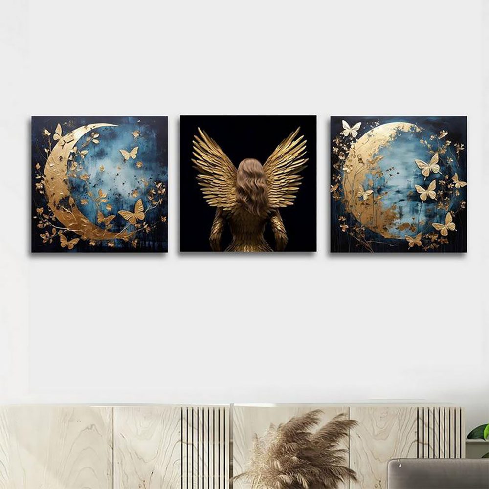 تابلو شاسی 3 تکه طرح بال و ماه طلایی کد 52504