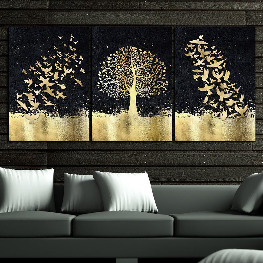 تابلو شاسی 3 تکه طرح طلاکوب درخت و شجره کد 63354
