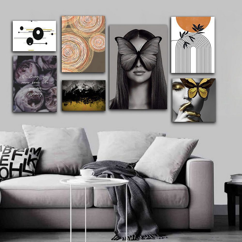 تابلو شاسی 7 تکه طرح مدرن چهره و پروانه کد 34050