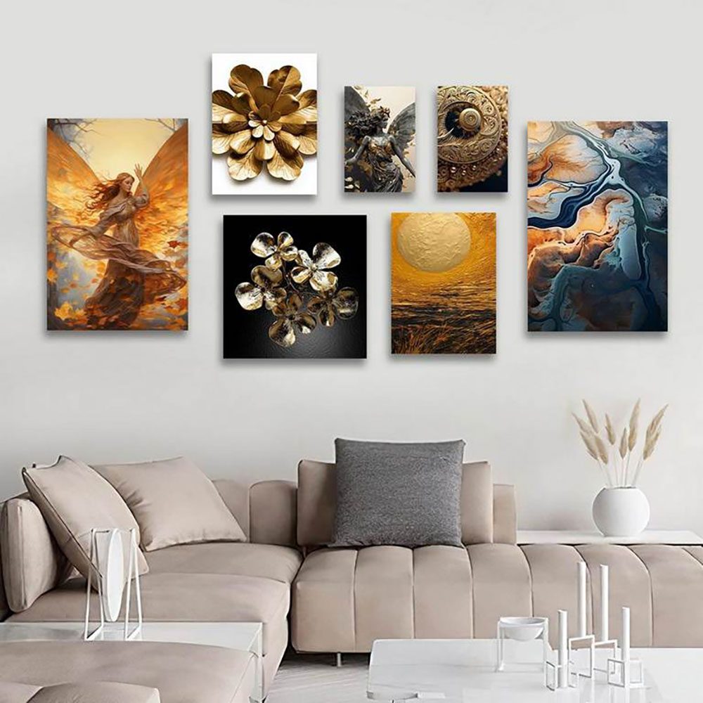 تابلو شاسی 7 تکه طرح گل و ماه و چهره طلایی کد 57819