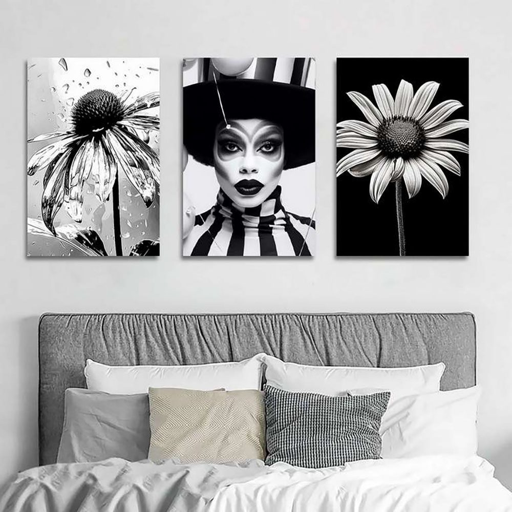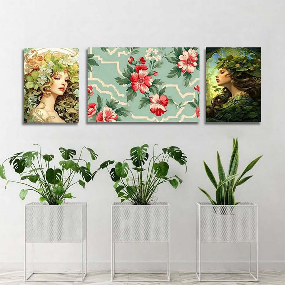 تابلو شاسی 3 تکه طرح گل و چهره کد 19880