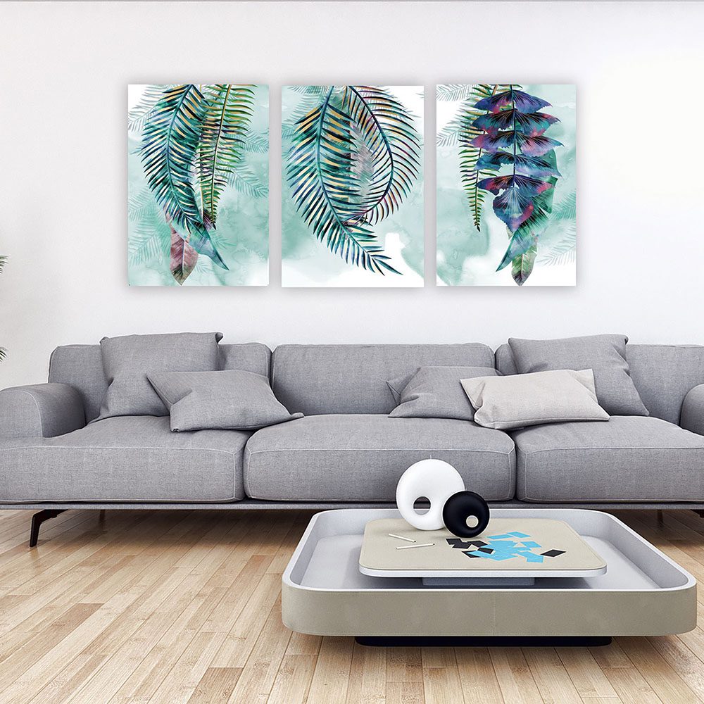 تابلو شاسی 3 تکه طرح مدرن طبیعت و برگ سبز کد 36071
