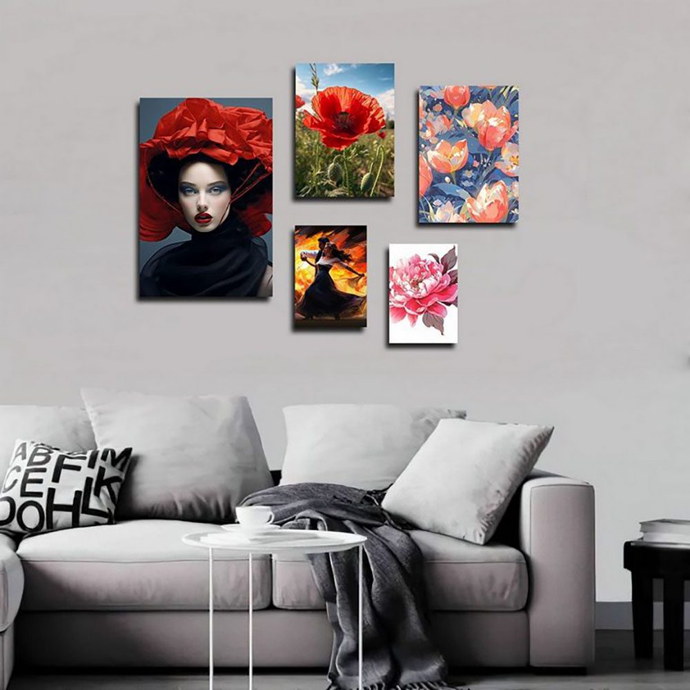 تابلو شاسی 5 تکه طرح چهره و گل رنگی کد 12552