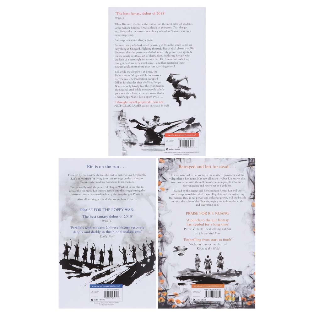 با شعلهور شدن آتش جنگ میان امپراتوری نیکان و دشمن دیرینهاش فدراسیون موگن (امپراتوری جزیرهای همسایه)، آموزش آکادمی جای خود را به میدان واقعی نبرد میدهد. رین خود را در میانهی جنگ سوم خشخاش مییابد؛ جنگی الهامگرفته از واقعیتهای تاریخی (اشاره به تهاجم ژاپن به چین در جنگ جهانی دوم) که صحنههای هولناکی از خشونت و نسلکشی را بازتاب میدهد. در هنگامهی سقوط شهرها و قتلعام مردم بیگناه، رین با آزمونی وحشتناک روبهرو میشود: آیا او آماده است تا برای نجات سرزمینش از قدرت ویرانگر ققنوس استفاده کند و انتقام خونین بگیرد؟ تصمیمات رین در اوج نبرد پایانی کتاب، سرنوشت امپراتوری را دستخوش تغییری سهمگین میکند – تغییری که پیروزی را با بهایی دهشتناک همراه خواهد کرد و سؤال از انسانیت او را پیش میکشد (این پایانبندی در عین تکاندهنده بودن، در اینجا فاش نمیشود). رمان جنگ خشخاش با پرداخت واقعگرایانه به فجایع جنگ و تأثیرات روانی آن، خواننده را در برابر این حقیقت قرار میدهد که پیروزی در جنگ گاهی به قیمت باختن روح و اخلاق تمام میشود.